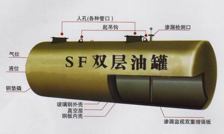 3、雙層油罐玻璃鋼的制作采用國際較先進的噴涂法制造而成,并在原料中添加強化因子,保證了玻璃鋼的韌性和輕度,玻璃鋼的勻度好,上下誤差不超過1毫米,保證每臺油罐的玻璃鋼厚度不低于4毫米,樹脂采購來之巴斯夫,完全保證質(zhì)量。樹脂的價格大概有3倍的差距。